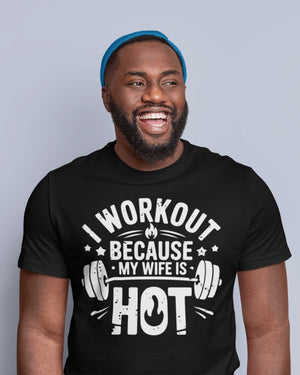 I WORKOUT BECAUSE MY WIFE IS HOT Regular-fit T-Shirt