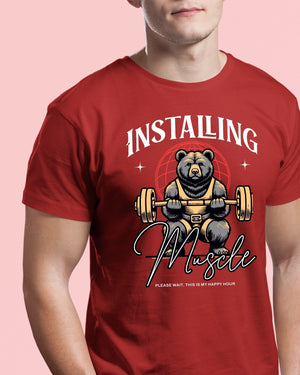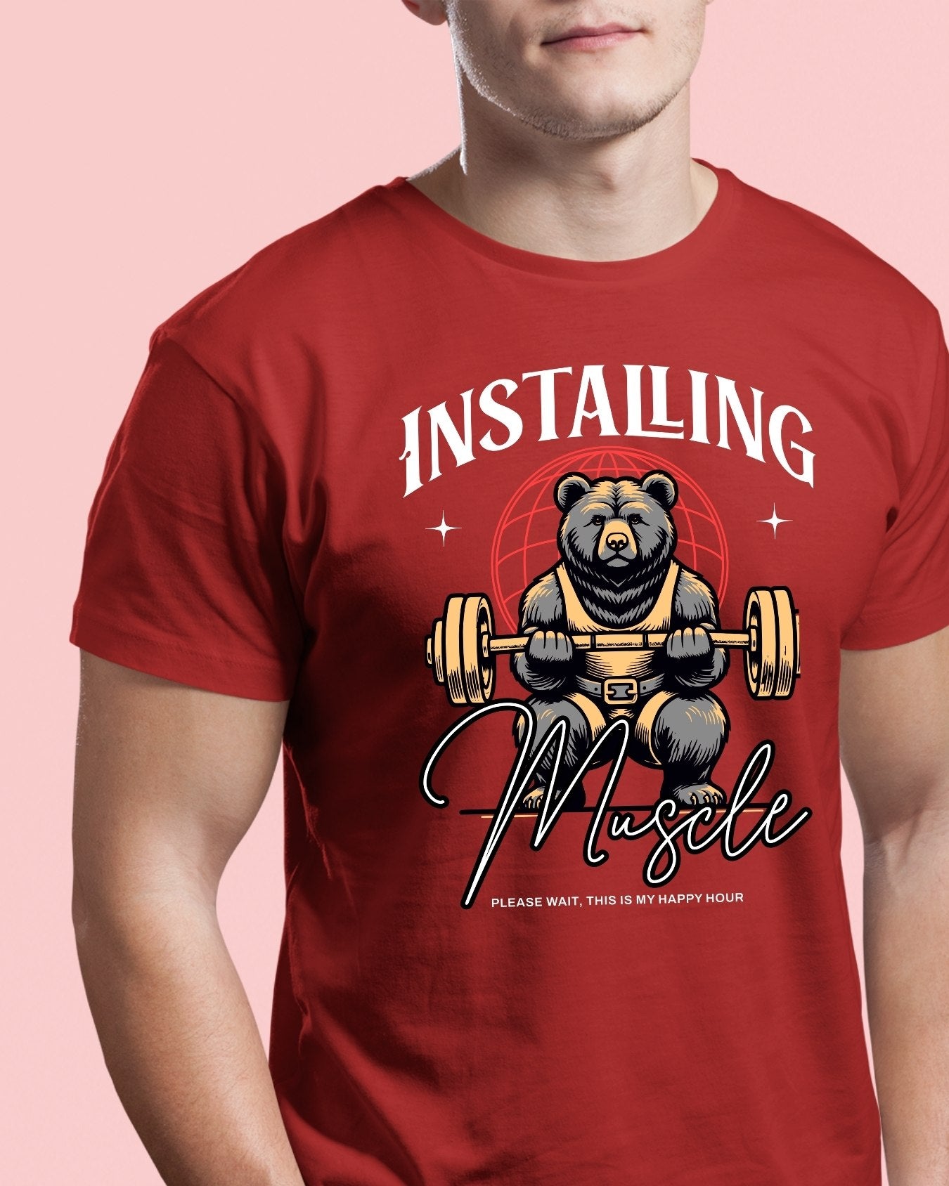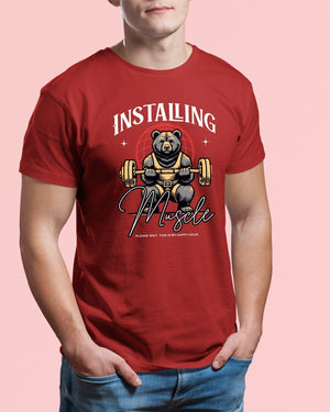I'M INSTALING MUSCLE PLEASE WAIT Premium pure cotton T-Shirt(Red)