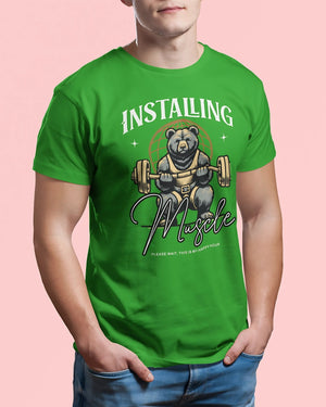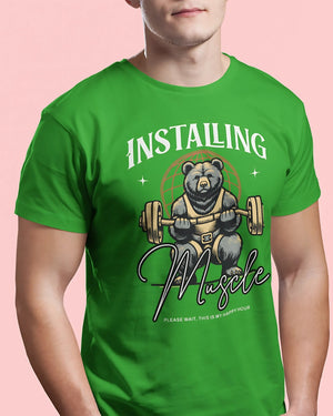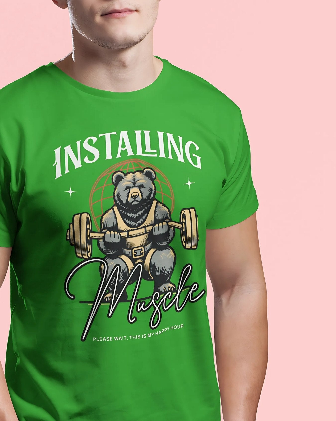 INSTALING MUSCLE PLEASE WAIT Premium pure cotton T-Shirt(Flag Green)
