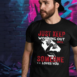 JUST KEEP WORKING OUT UNTIL SOMEONE LOVES YOU Premium Regular-fit T-Shirt