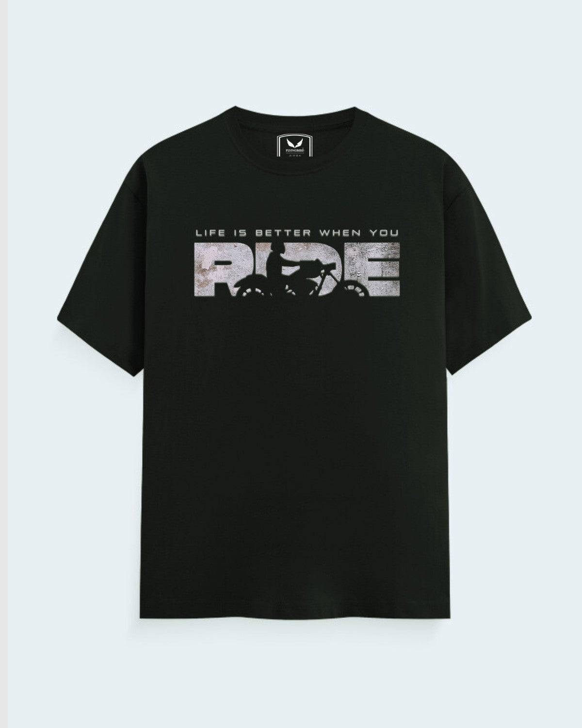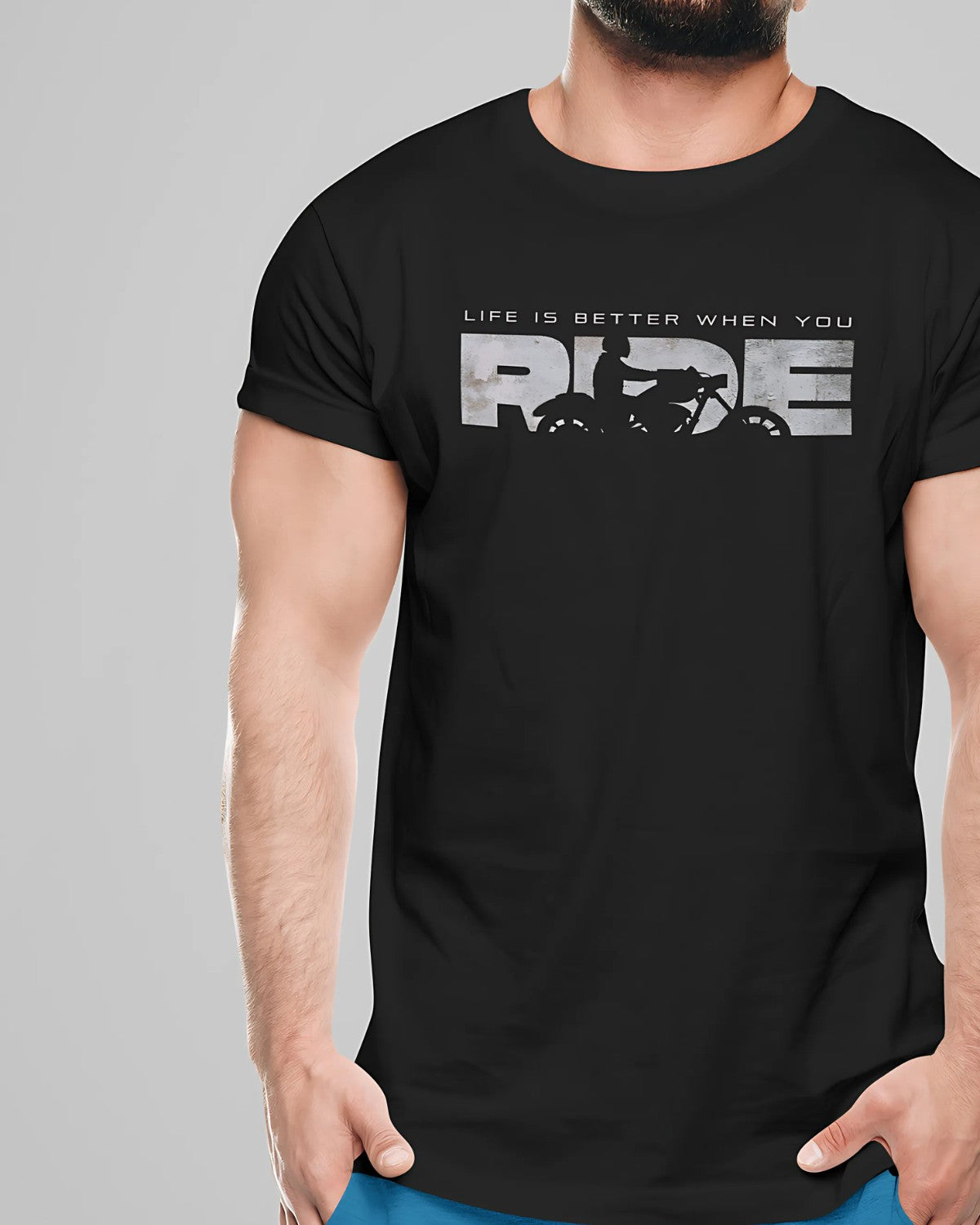 LIFE IS BETTER WHEN YOU RIDE PREMIMUM Cotton T-Shirt (BLACK)