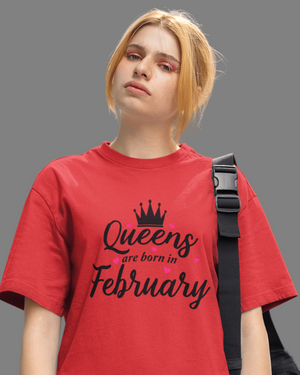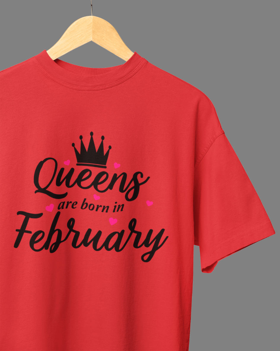 QUEENS Are Born in February Premium Oversize Tshirt (Red)