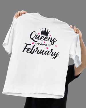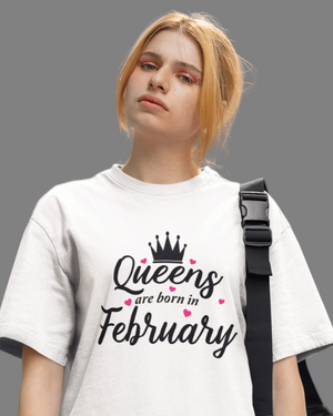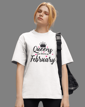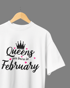QUEENS Are Born in February Premium Oversize Tshirt (White)
