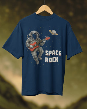 SPACE ROCK Premium Cotton Oversized T-shirt (Navy Blue)